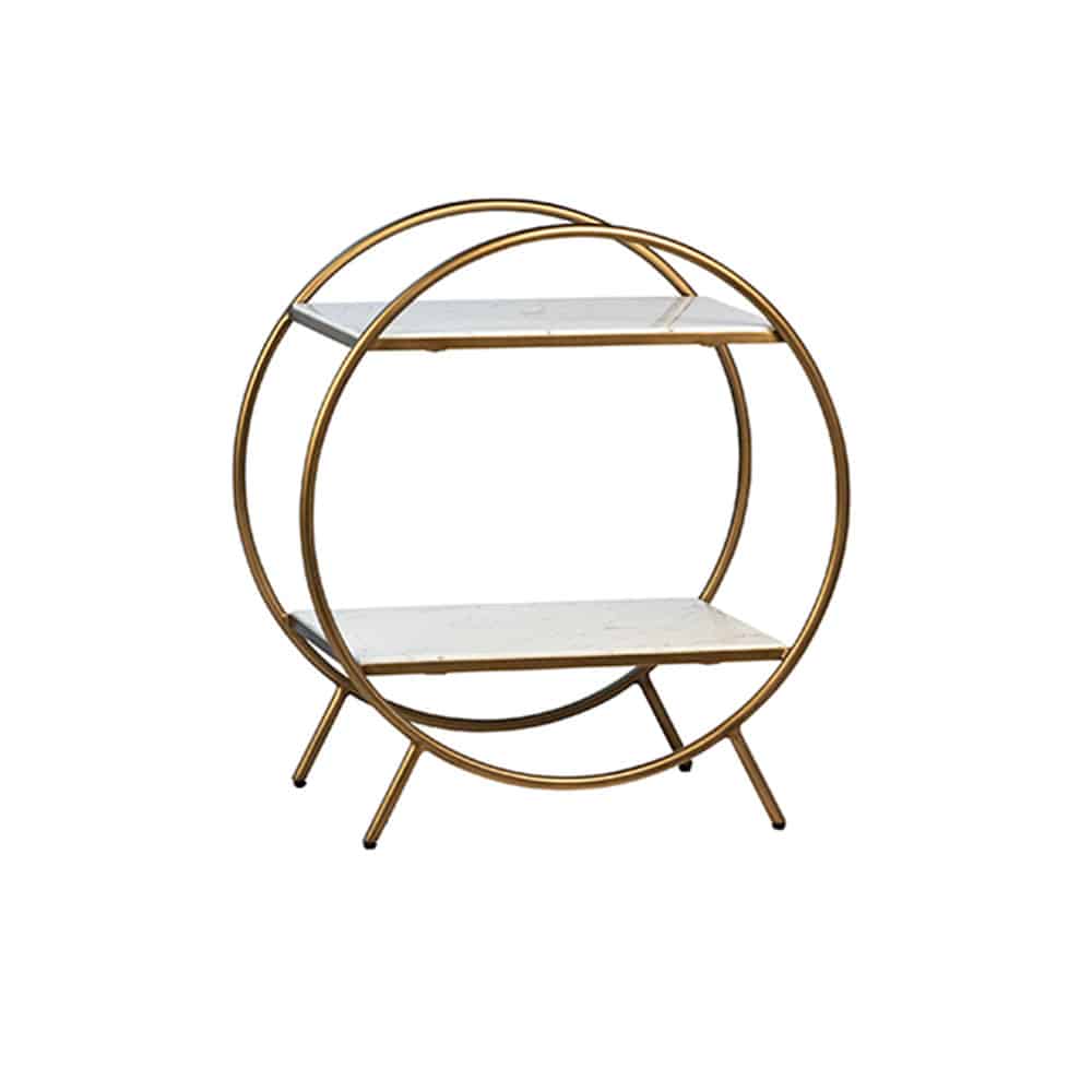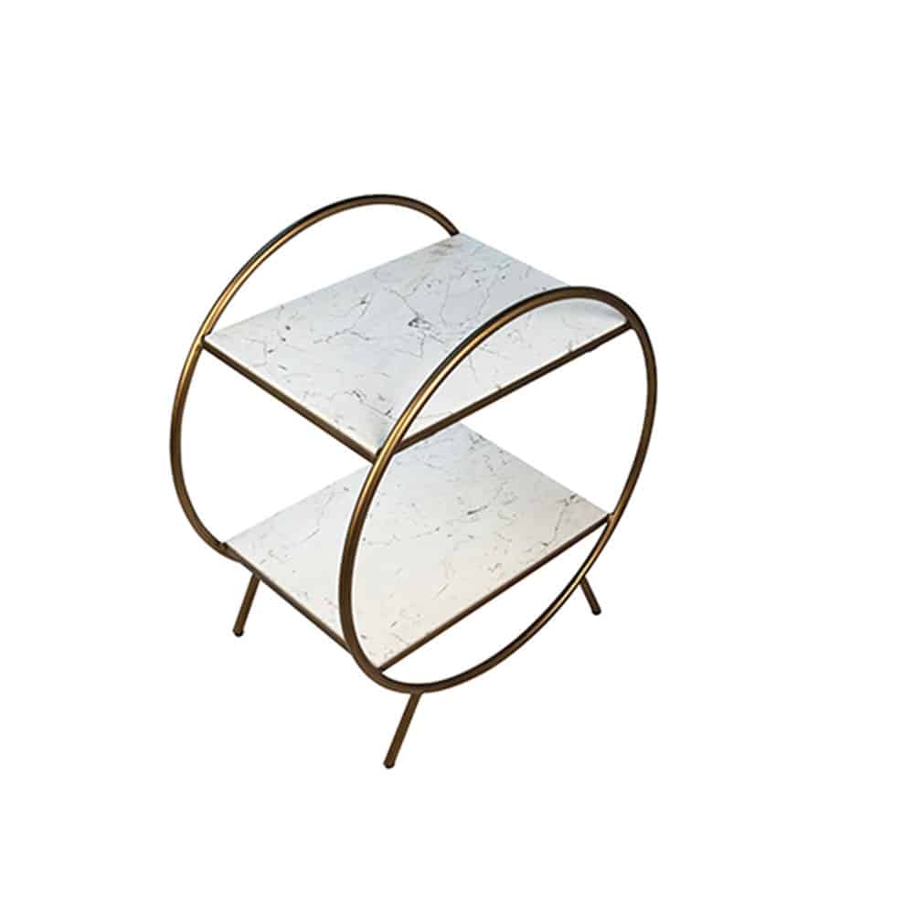 Marble and metal tray trolley that makes a great cocktail cart in an antique brass metal finish and faux white marble.