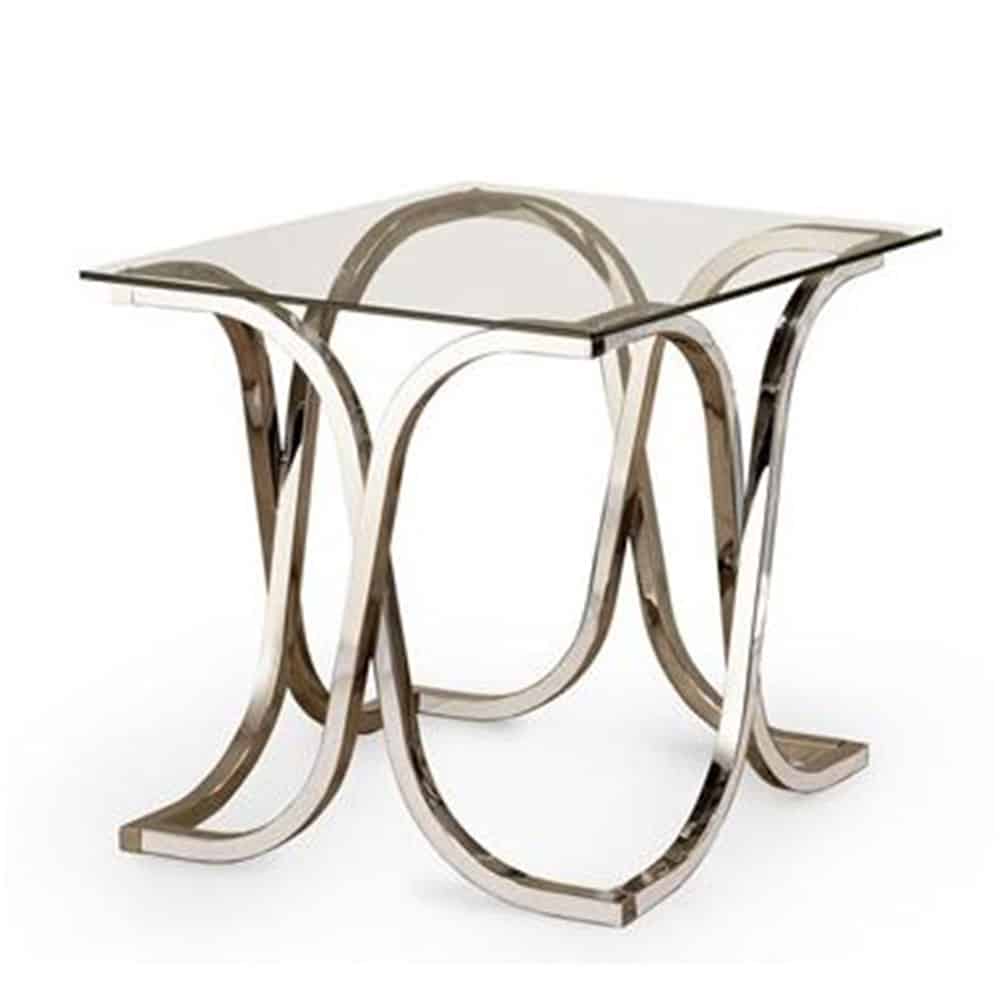 Add a chic, sophisticated accent to your living room decor. This gorgeous end table exudes posh, modern opulence. Its base is exquisitely crafted into an eye-catching X-shaped design with soft, graceful curves. A stunning chrome finish adds dazzling shine to its striking silhouette. This table is complete with a tempered glass top for added glamour and sturdy support.
