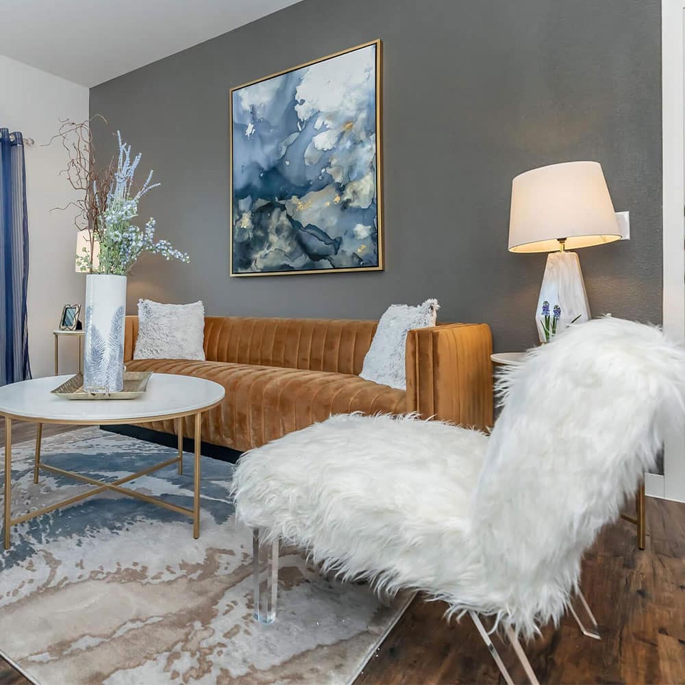 Explore the 1960s personality of your inner designer self. Fashionable and festive, this accent chair reignites the romance of a beloved nostalgic era. A low-profile minimalist silhouette offers seating comfort. Warm, fuzzy white textile-like fabric casts a retro ambiance and infuses tons of charm. Clear acrylic legs shore up its whimsical personality and add a dose of fun.
