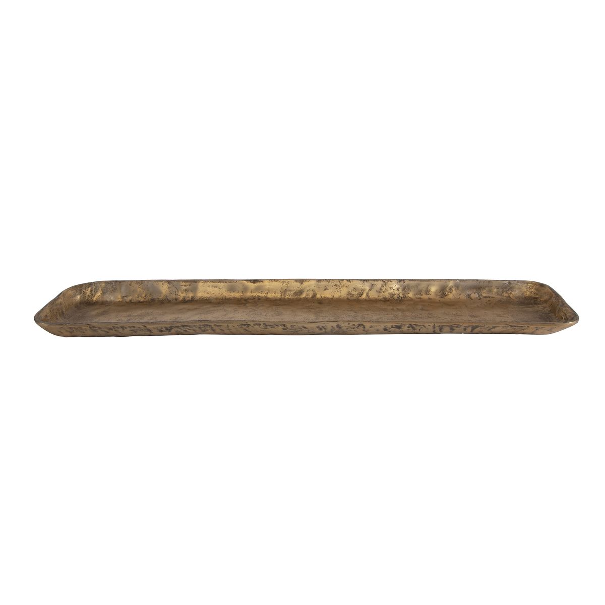 A grand scale tray, made of textured aluminum with a beautiful antique gold finish, is perfect for display or holding treasured items.