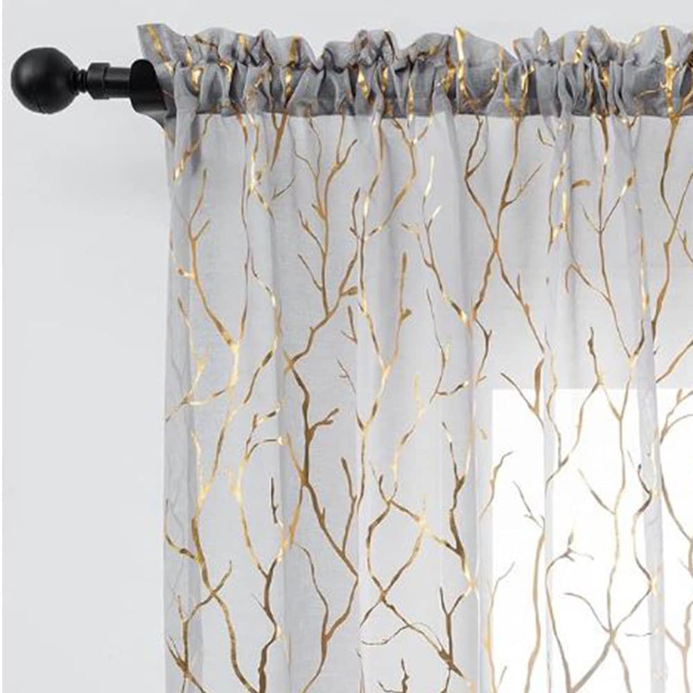 GREY & GOLD METALLIC TREE BRANCH SHEER 2 PANEL DRAPERY, 52×96