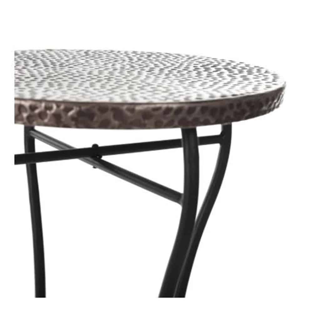 This round accent table is a stunning blend of style and functionality, featuring a striking hammered sheet metal top in an antique copper finish that adds warmth and character to any space. The sturdy metal frame in an oil-rubbed bronze enhances its durability while providing a sophisticated contrast. Perfect for showcasing decor, serving drinks, or enhancing your living area, this table elevates both modern and classic interiors.